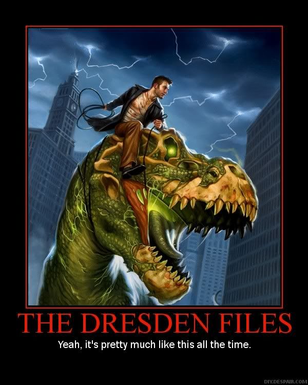 Anyway. Um. I'm not saying that you should read the Dresden Files, because god knows. They're -- ha. They're something. And if you don't enjoy badfic or its better-written cousin of LKBF, it's probably a really terrible idea for you to read the Dresden Files. Mostly, I just figured I'd toss out a few things I'd wished I'd known about the series, going in, so you can make an informed decision! (People kept saying "it gets better! really, it gets better!" but that's really not helpful -- it gets better how? So, thus you get sparkly teal deer about how it is bad and how it gets better, oh my god it really is Lord King Bad Fic.)